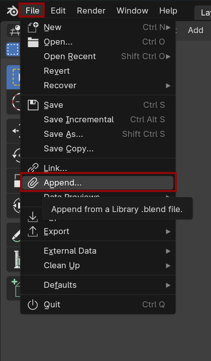 Now that we have a second body saved we're going to go to File - Append