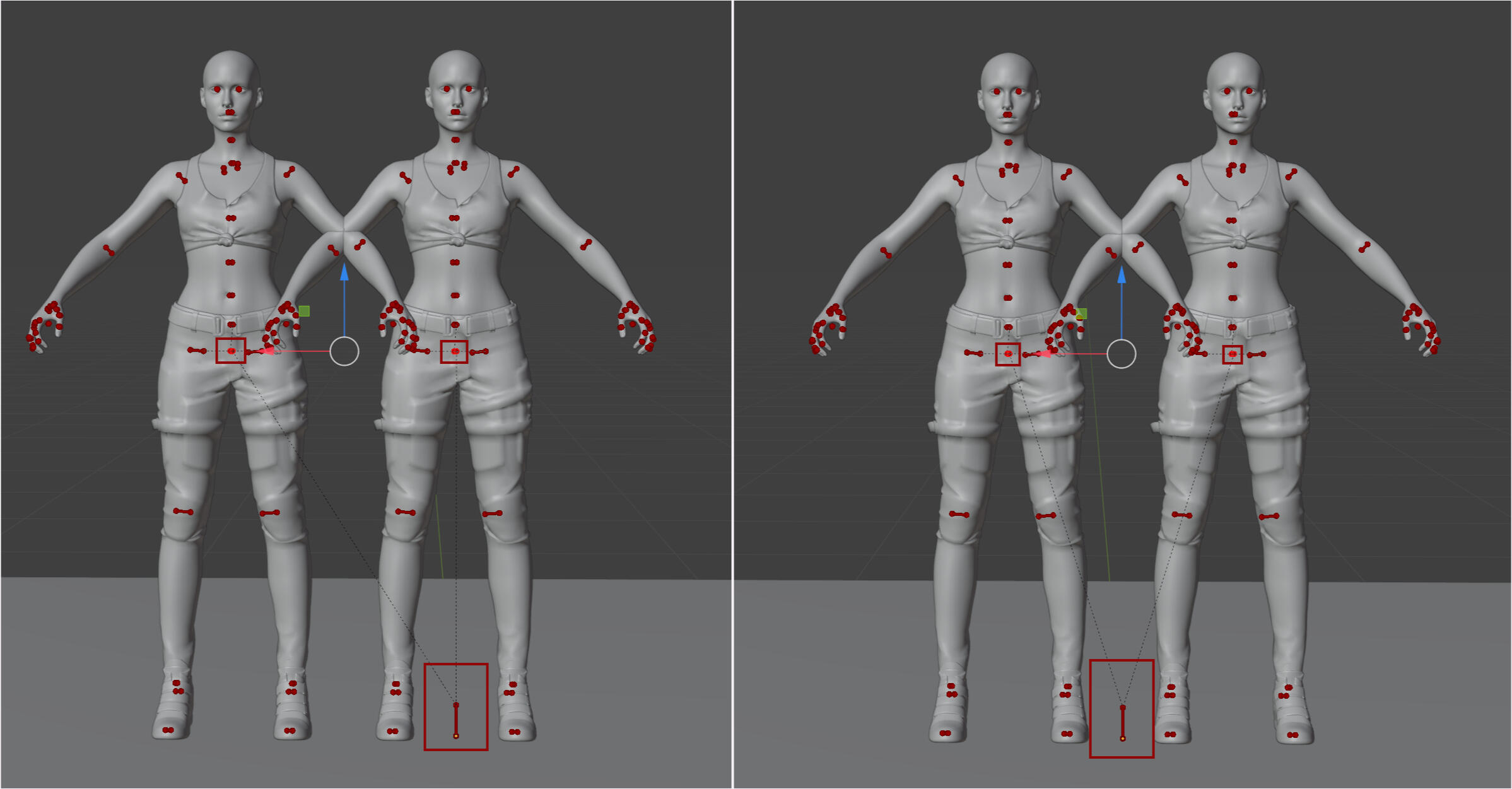 And that's basically it. You now just make your poses as usual. One thing to note is that when you are done with your pose select all the crotch points and see where the root point/middle ground point is. Scoot your pose so that point is in the middle so the poses show up proper centered in photomode.If you use the copy paste method for adding the animation, or baking in the poses as they officially call it, that I explained in my Photomode Pose Tutorial, where you move the pose to an unposed file, then that is still the same. Do not move your model to the center point in the unposed file, leave it where it is from the position in your multi-character file.Sadly Eye Tracking is still broken in PM so eyes will be hard to adjust with look at camera. The only way to really fix it is to rotate the poses to the front-facing Y. However this may end up breaking the syncing of the models so it's really a choice if you want them to sync together easily in photomode or if you want to be able to use the eyes with the look at camera tool.The other option is making them available for AMM which is not experiencing the eye track issue. Which I would advice offering as an option always to begin with for both multi-character and solo poses.